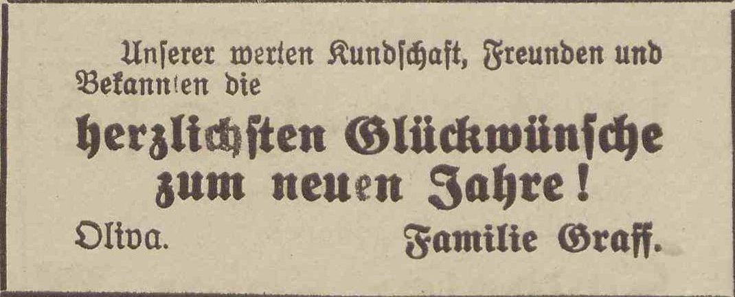 Otto Graff. Podziękowania noworoczne, Olivaer Zeitung nr 306 z 31. 12. 1928.
