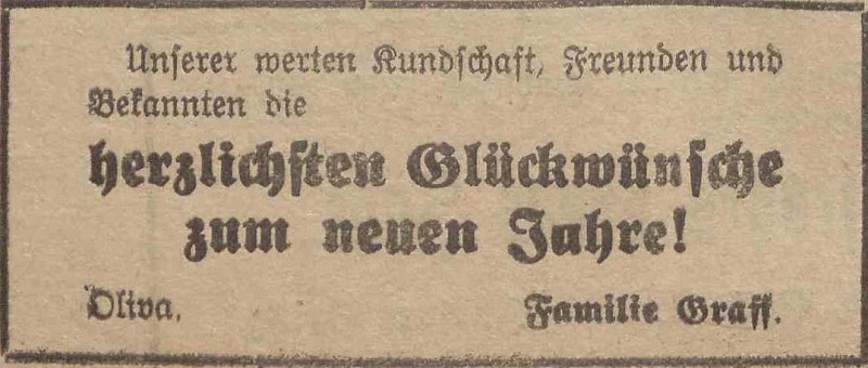 Otto Graff. Podziękowania noworoczne, Olivaer Zeitung nr 306 z 31. 12. 1920.