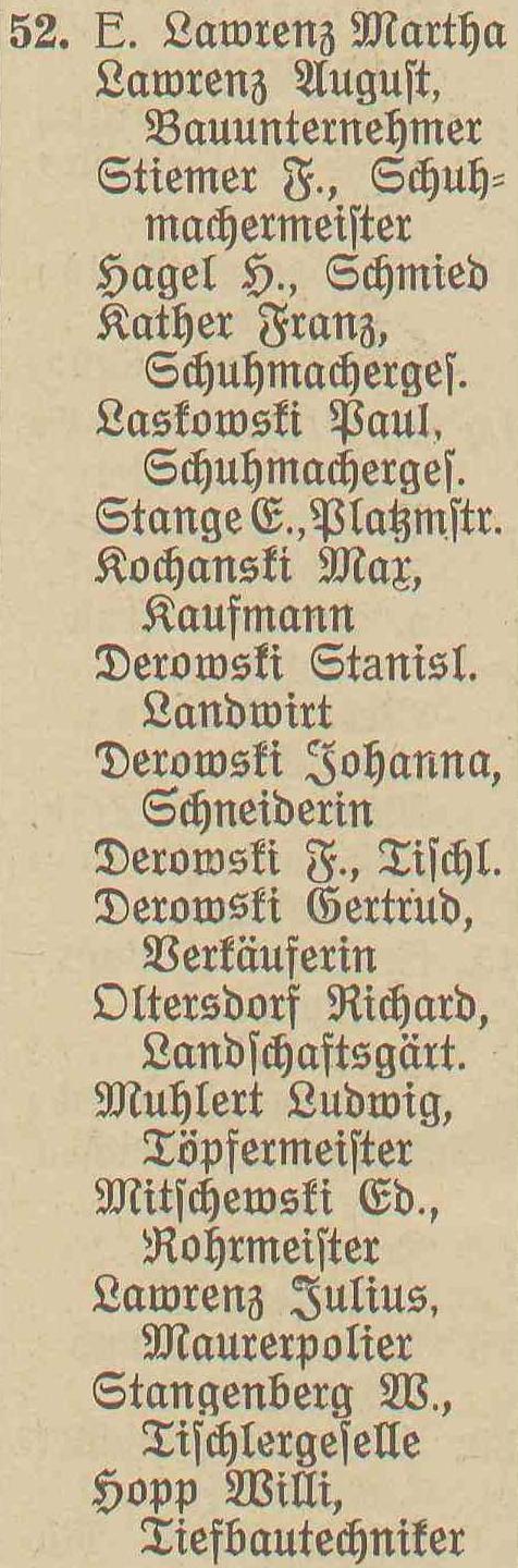 Martha Lawrenz. Książka adresowa gminy Oliwa z 1910 roku. Zbiory Pomorskiej Biblioteki Cyfrowej.