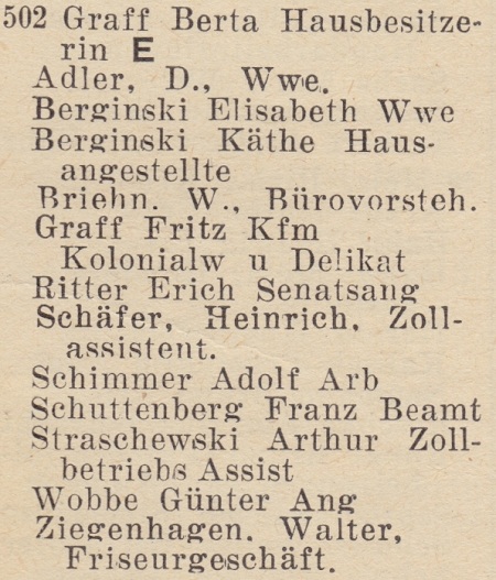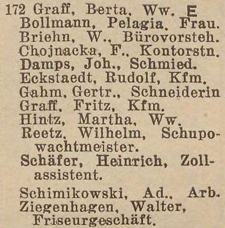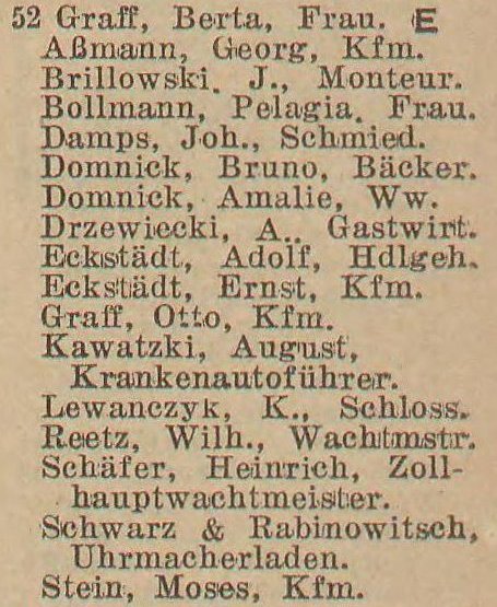 Berta Graff. Joh. Damps, klowal. Książka adresowa z 1929 roku. Internet: Pomorska Biblioteka Cyfrowa.