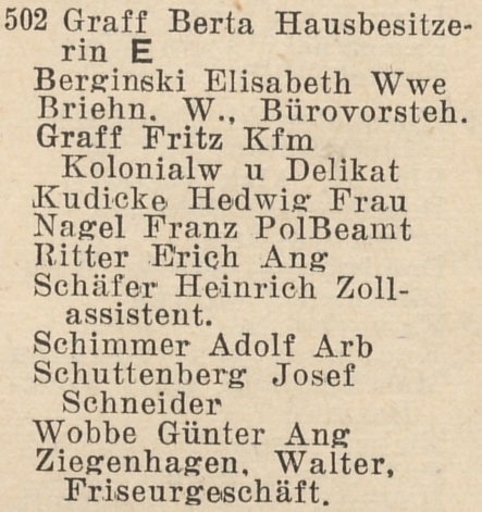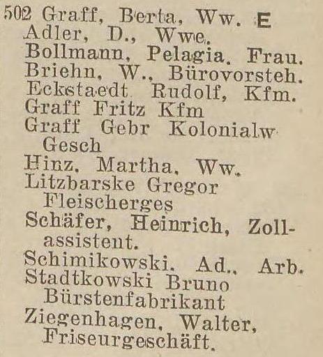 Graff. Książka adresowa gminy Oliwa z 1916 roku. Zbiory Mirosława Piskorskiego.