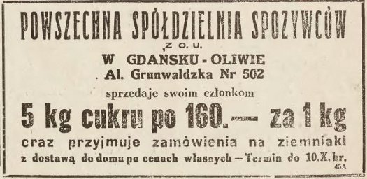 Powszechna Spółdzielnia Spożywców. Dziennik Bałtycki z 01. 10. 1946 r. Zbiory Bałtyckiej Biblioteki Cyfrowej.