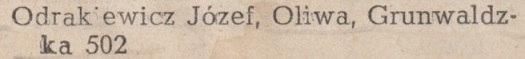 Józef Odrakiewicz. Skorowidz inf. z marca 1946 roku. Zbiory Mirosława Piskorskiego.