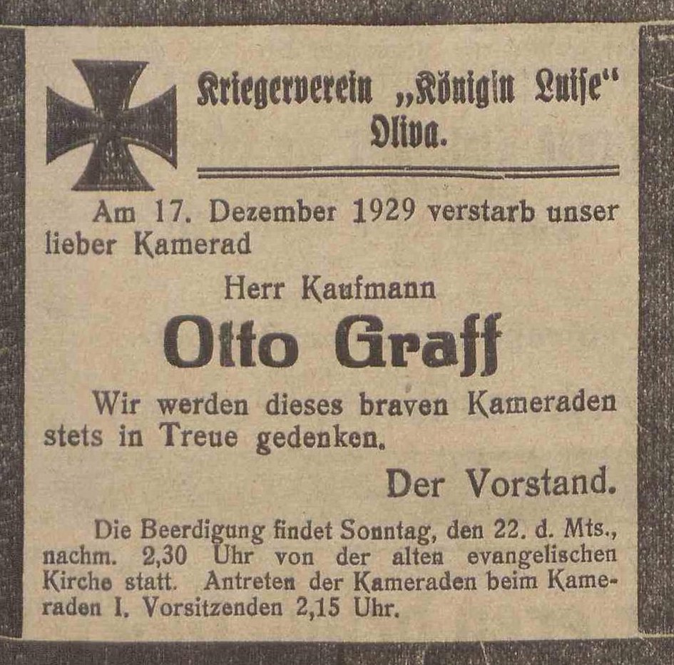 Otto Graff. Olivaer Zeintung nr 298 z 20. 12. 1929 r.