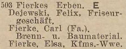 Carl Fierke. Książka adresowa z 1931 roku. Zbiory Pomorskiej Biblioteki Cyfrowej.