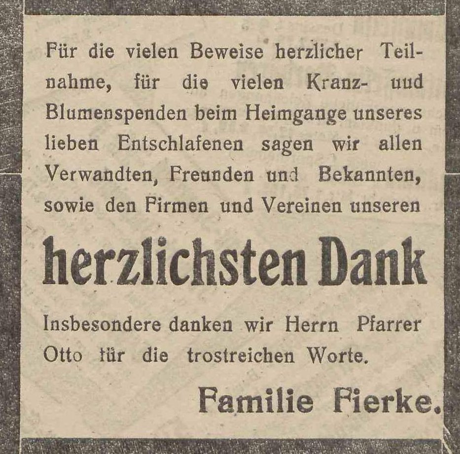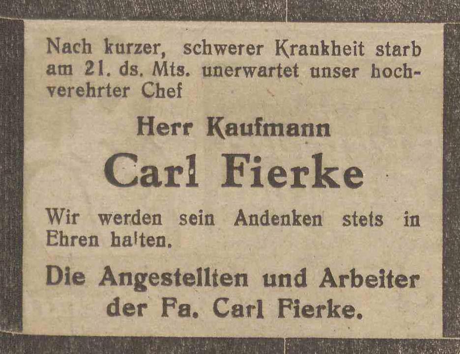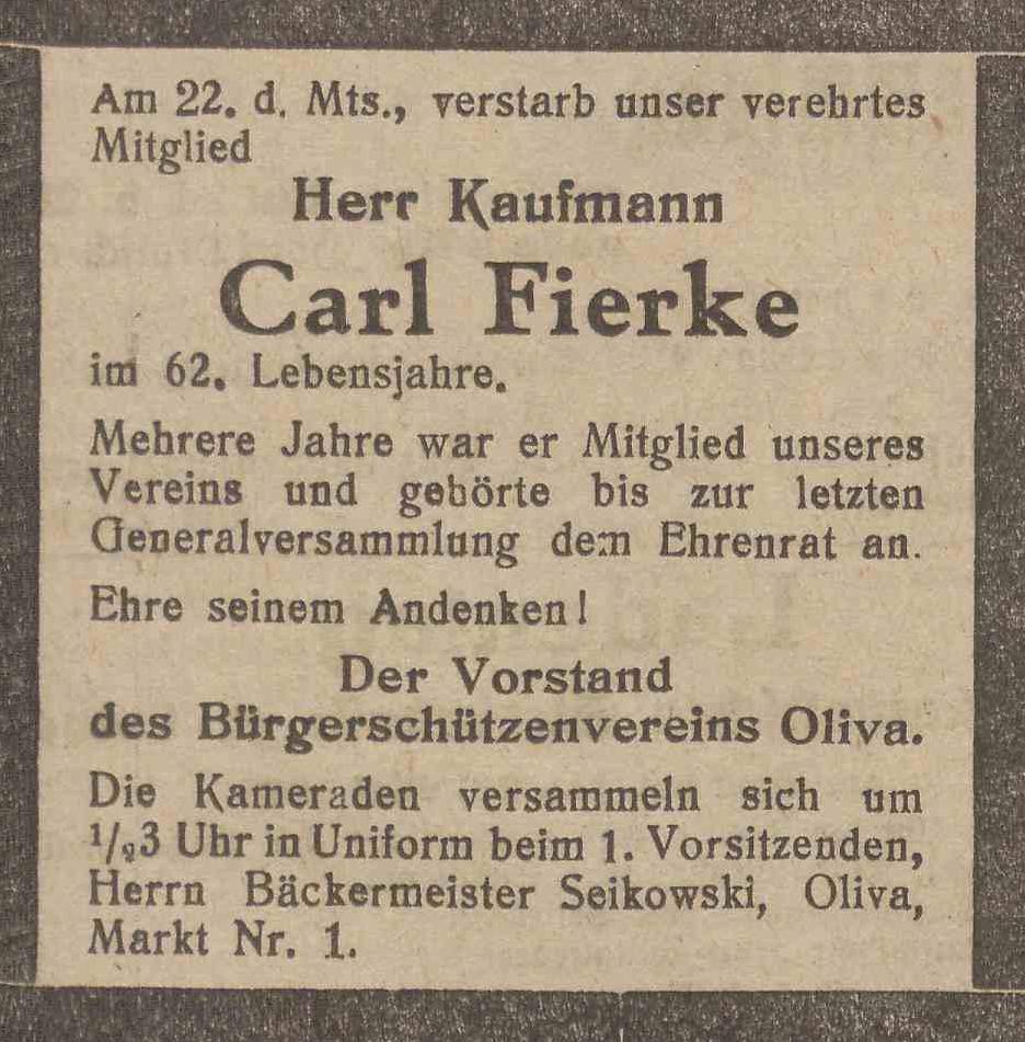Carl Fierke. Olivaer Zeintung nr 126 z 01. 06. 1929 r.