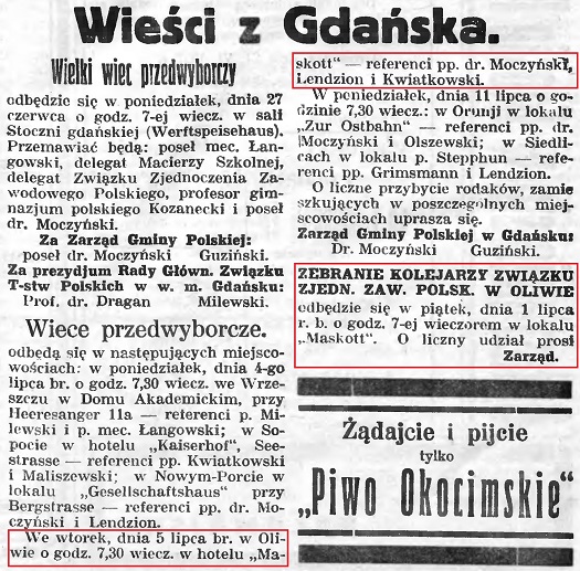 Lutnia. Ogłoszenie. Gazeta Gdańska z 22. 07. 1927 roku. Zbiory Pomorskiej Biblioteki Cyfrowej.