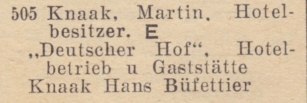 Martin Knaak. Książka adresowa z 1929 roku. Internet: Pomorska Biblioteka Cyfrowa.