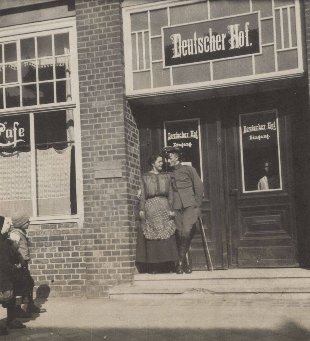 Deutscher Hof. Danziger Straße. Fotograwia wykonana w 1918 roku. Zbiory Piotra Leżyńskiego.