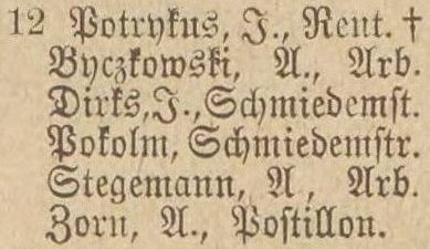 | 1901 | - | Potrykus Joseph, właściciel, Danziger Chaussee 12, 13 |