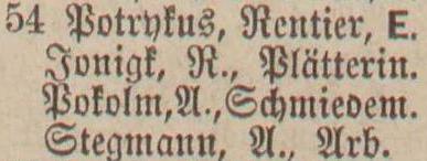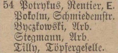 | - | Potrykus Joseph, Rentier, Danziger Chaussee 54 |