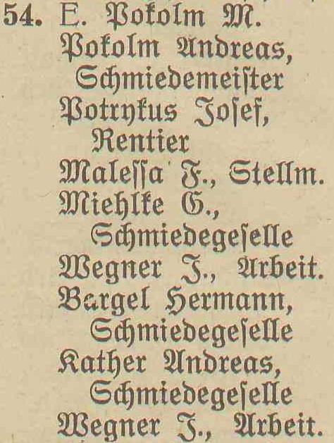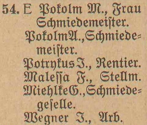 | 1920 | - | Pokolm Andreas, Schmiedmeister, Danziger Straße 54 |