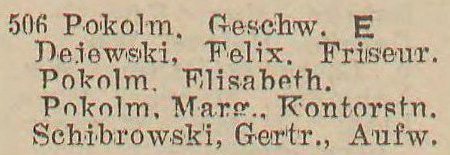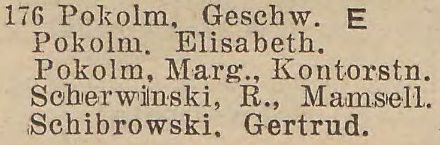 | 1915 | - | Pokolm Marie, właścicielka, Danziger Straße 54 |