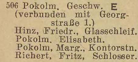 | 1916 | - | Pokolm Marie, właścicielka, Danziger Straße 54 |