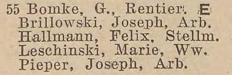 Adres: Adolf-Hitler-Straße 508. Józef Brillowski (ur. 1858, zm. 03.04.1943 - uwiąd starczy). Źródło: , 04.1943 poz. 28.