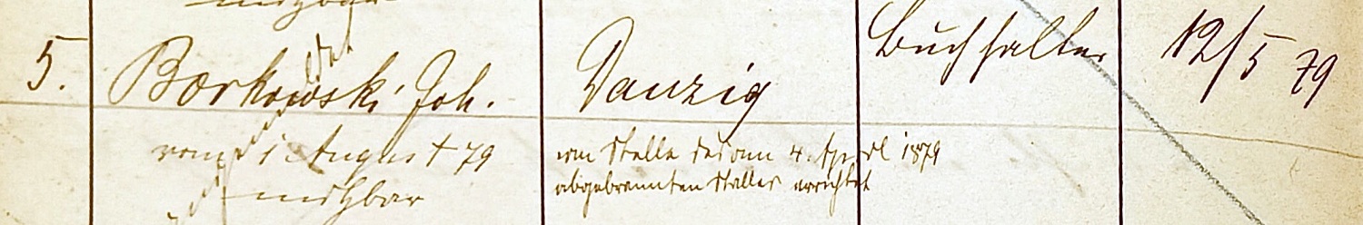 Johann Borkowski. Baukonholle Oliva IXX. Wpis z 12. 05. 1879. Przekazała Grażyna Niemyjska.