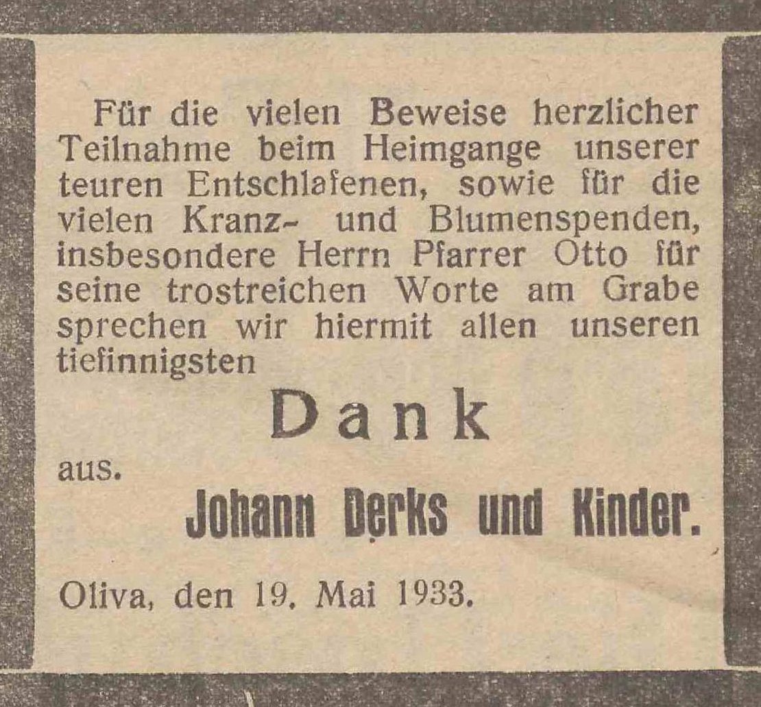 Johann Derks. Danzig-Olivaer Zeintung nr 114 z 16. 05. 1933 r.
