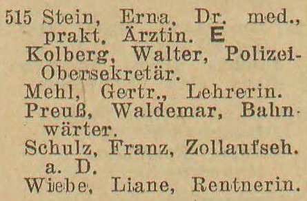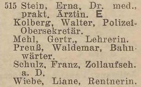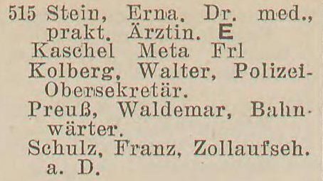 Erna Stein. Książka adresowa z 1933 roku. Zbiory Pomorskiej Biblioteki Cyfrowej.