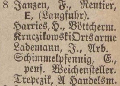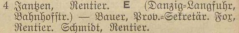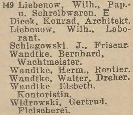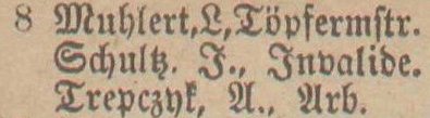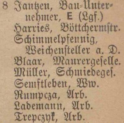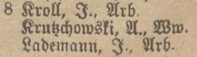 Danziger Chaussee 8: Ludwig Muhlert, Johann Lademann, Friedrich Drews. Spis z 1895 roku. Przekazała Grażyna Niemyjska.