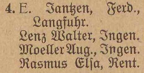 Ferd. Jaztzen. Książka adresowa gminy Oliwa z 1910 roku. Zbiory Pomorskiej Biblioteki Cyfrowej.