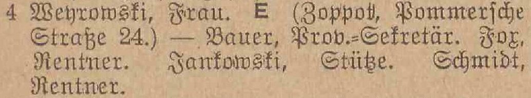 Klara Behrowski. Książka adresowa gminy Oliwa z 1916 roku. Zbiory Mirosława Piskorskieg.