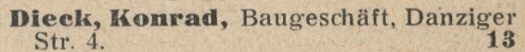 Konrad Dieck. Książka telefoniczna z 1925 roku. Zbiory Mirosława Piskorskieg.