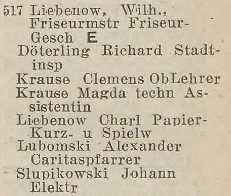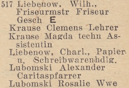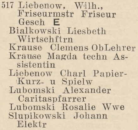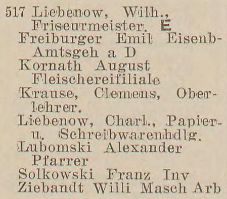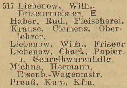 Liebenow, Wilhelm, fryzjer (Friseur).