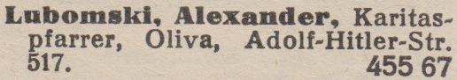 Paul Kornath. Alexander Lubomski. Książka telefoniczna z 1937 roku. Zbiory TPG Strefa Historyczna WMG.