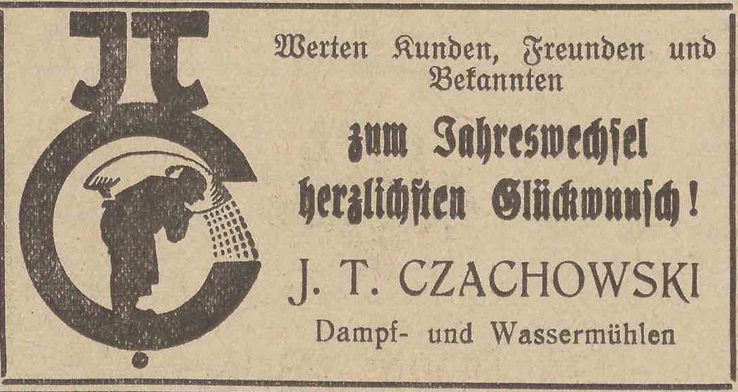 Znak firmowy (Shultzmarke) młynów Czachowskiego. Danzig-Olivaer Zeintung nr 31 z 12. 01. 1931 r.