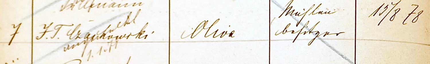 J. T. Czachowski. Baukonholle Oliva IXX. Wpis z 15. 08. 1878. Przekazała Grażyna Niemyjska.