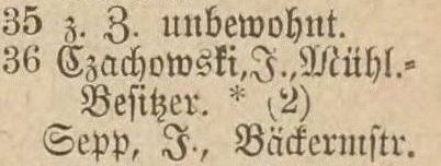 Zoppoter Chaussee 35: Anna Dühren. Zoppoter Chaussee 36: August Sepp. Spis z 1895 roku. Przekazała Grażyna Niemyjska.
