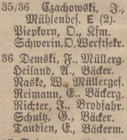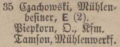 Joseph Taddeus (1809 Gdańsk – 1883 Oliwa). W 1859 roku odkupił od skarbu państwa młyn V (zbożowy) przy Zopotter Straße 73. W 1866 roku zakupił od Malonncka młyn VI (również zbożowy) przy Zoppoter Straße 4/5.