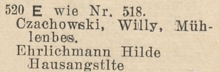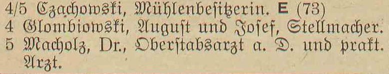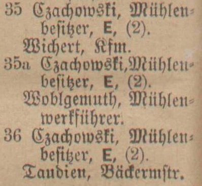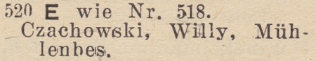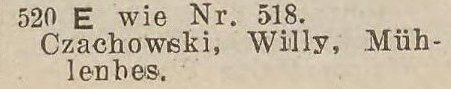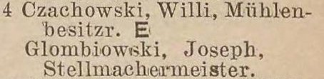 Hans, Willy Czachowski. Książka adresowa gminy Oliwa z 1916 roku. Zbiory Mirosława Piskorskiego.
