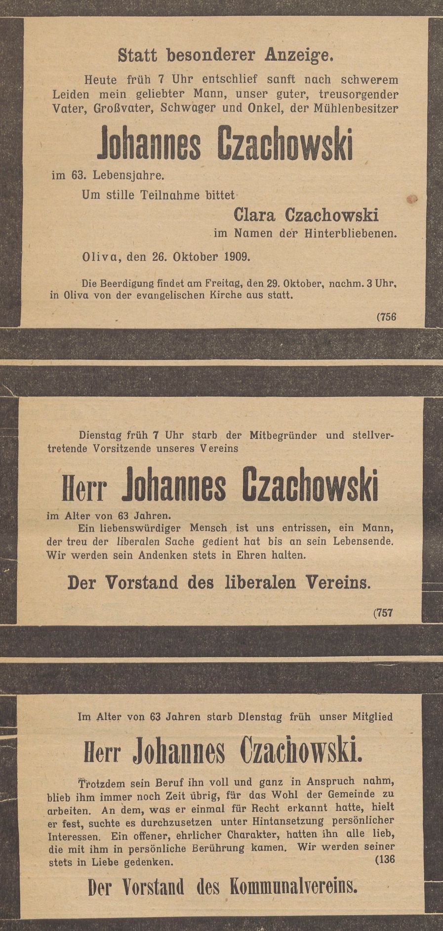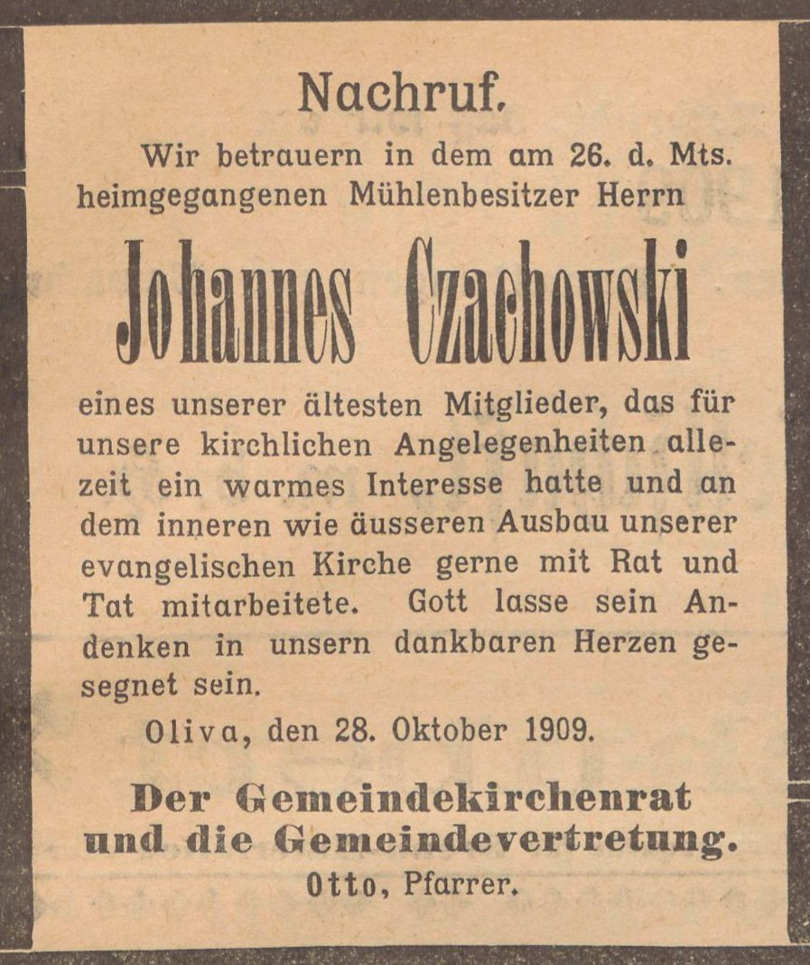 J. Czachowski. Książka adresowa gminy Oliwa z 1909 roku. Zbiory Pomorskiej Biblioteki Cyfrowej.