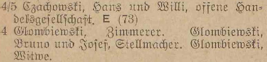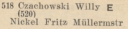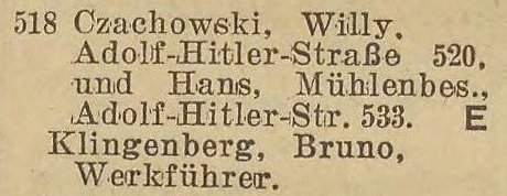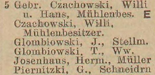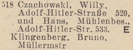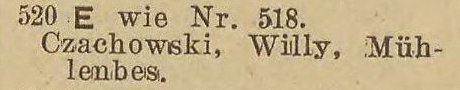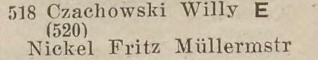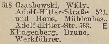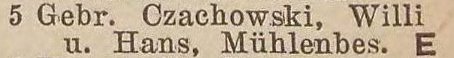 Hans, Willy Czachowski. Książka adresowa gminy Oliwa z 1915 roku. Zbiory Pomorskiej Biblioteki Cyfrowej.
