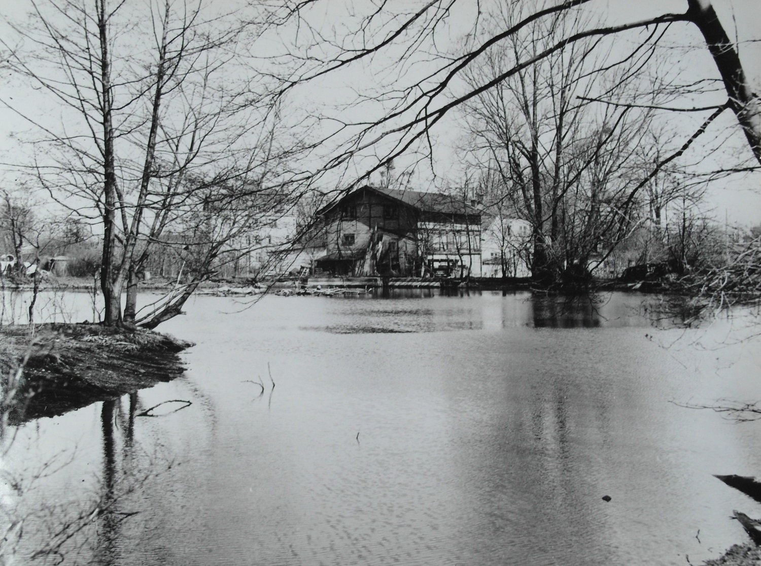 Dom Czachowskich. Widok od al. Grunwaldzkiej. Po lewej budynek gospodarczy i w głębi młyn. Lata międzywojenne. Fot. przekazana przez rodzinę Czchowskich.