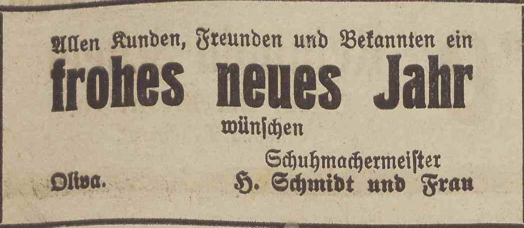 Hermann Schmidt. Podziękowania noworoczne, Olivaer Zeitung nr 305 z 31. 12. 1924.