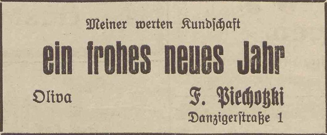 Fritz Piechotzki. Podziękowania noworoczne, Olivaer Zeitung nr 305 z 31. 12. 1924.