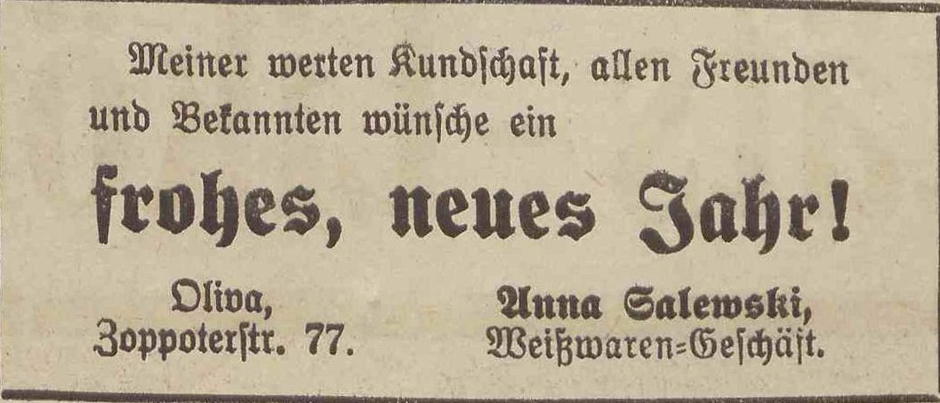 Anna Galewski. Podziękowania noworoczne, Olivaer Zeitung nr 305 z 31. 12. 1924.