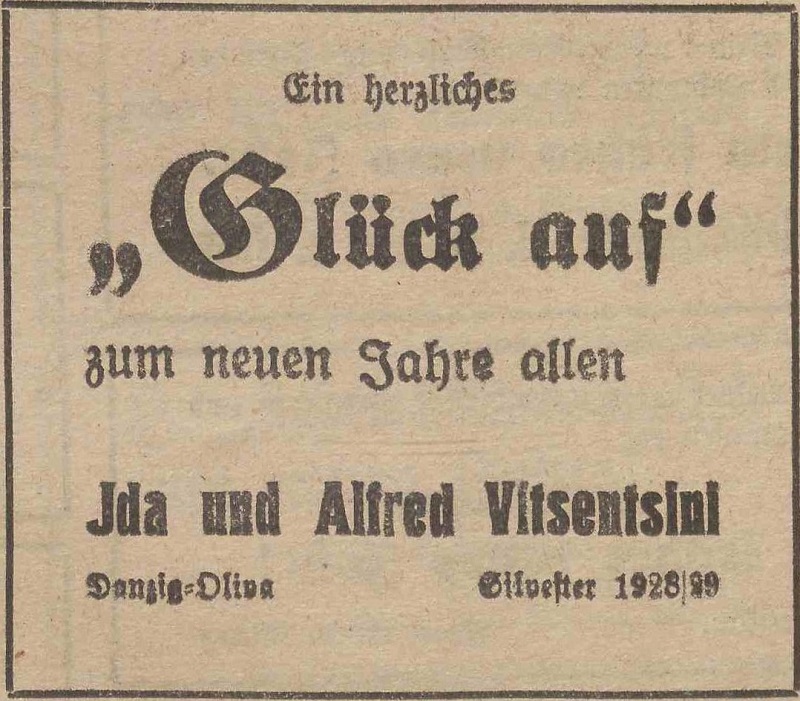 Ida Vitsentaini, Alfred Vitsentaini. Podziękowania noworoczne, Olivaer Zeitung nr 306 z 31. 12. 1928.