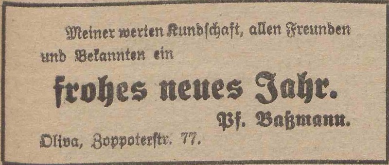 Pf. Baßmann. Podziękowania noworoczne, Olivaer Zeitung nr 306 z 31. 12. 1928.
