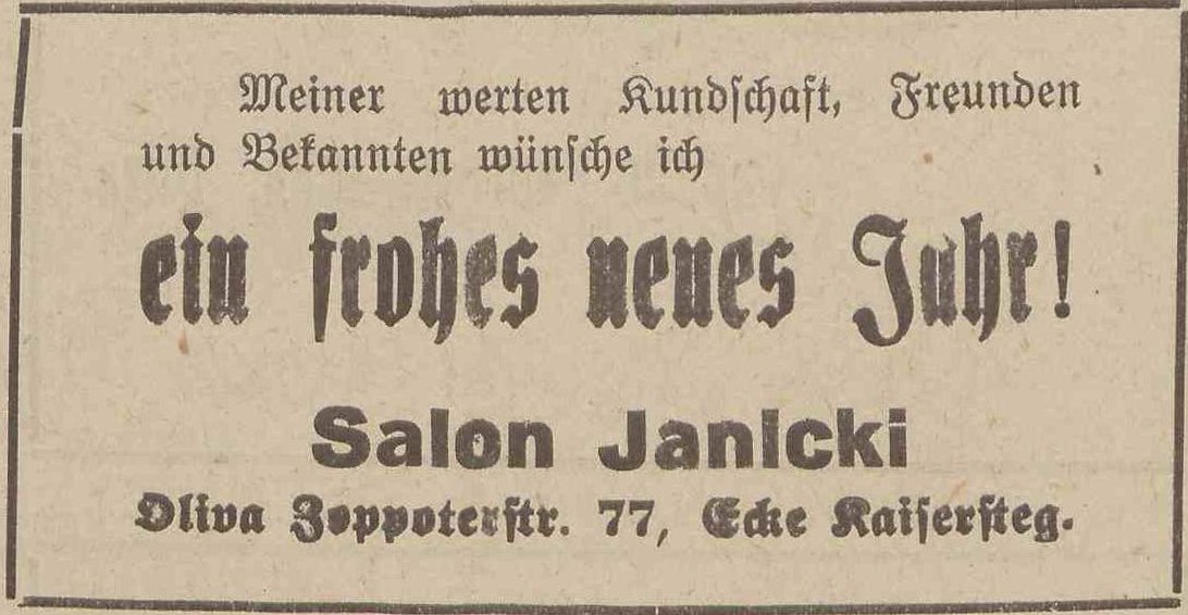 Salon Ksamir Janicki. Podziękowania noworoczne, Danzig-Olivaer Zeitung nr 305 z 31. 12. 1932.