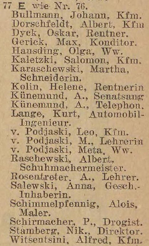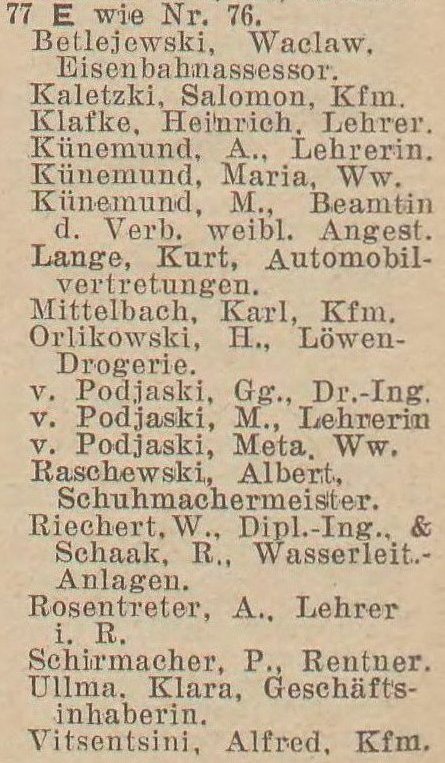 S. Kaletzki. Kurt Lange - Autohaus. Alfred Vitsentsini. Książka telefoniczna z 1925 roku. Zbiory Mirosława Piskorskiego.