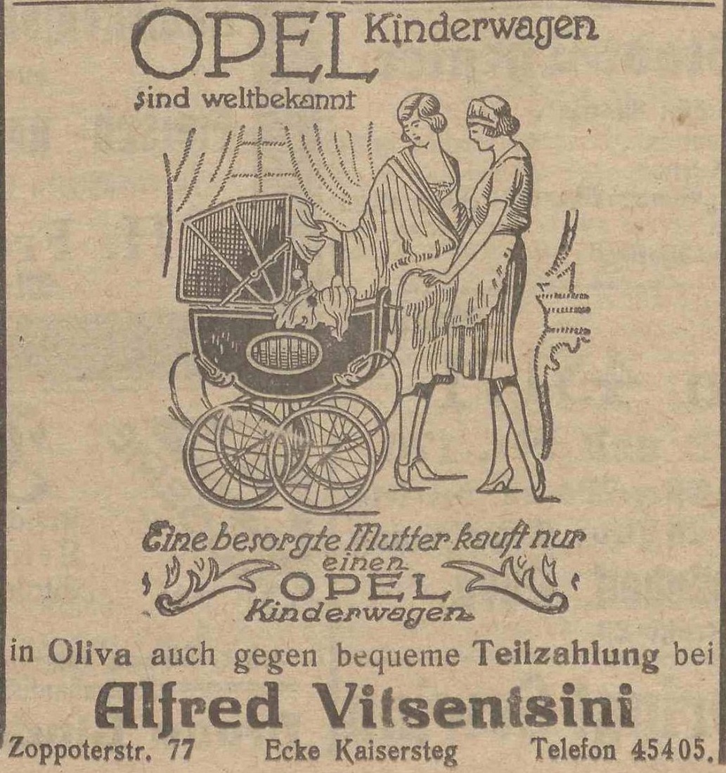 Alfred Vitsentsin. Opel Kinderwagen. Olivaer Zeintung z 1928 r.