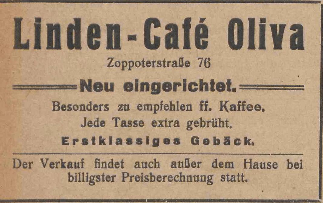 Paul Beneke. Olivaer Zeitung. Zoppoter Straße 76. Lata 20. XX w. Internet: www.eBay.de.