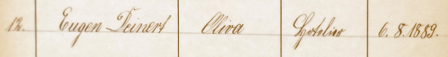 Eugen Deinert. Baukonholle Oliva IXX. Wpis z 06. 08. 1889. Przekazała Grażyna Niemyjska.