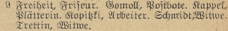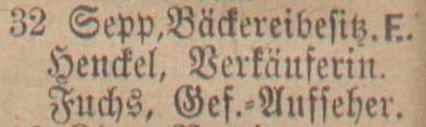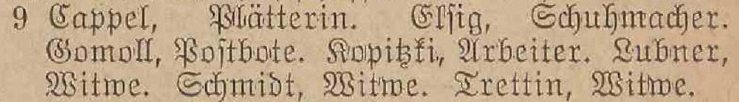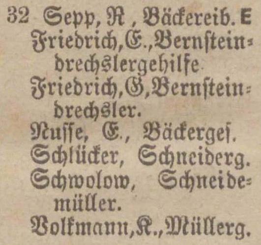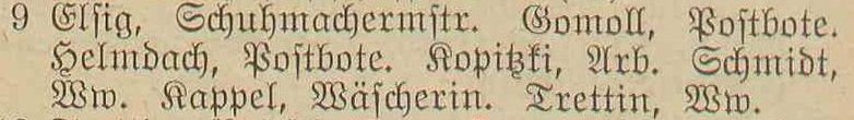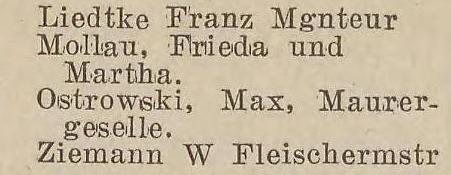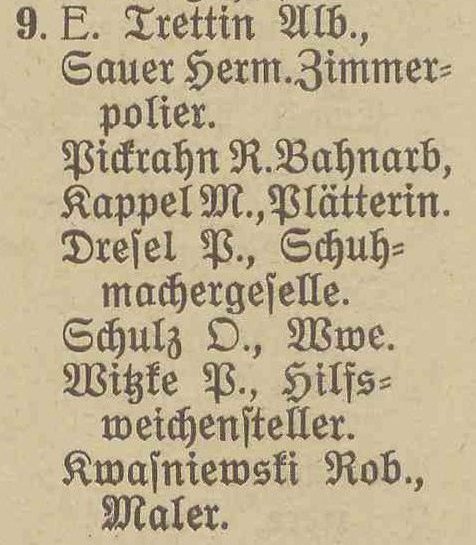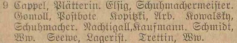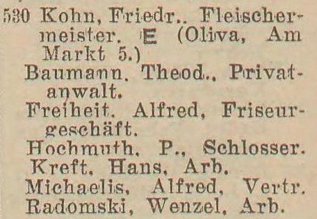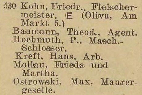 Zoppoter Chaussee 32: Hermann Feller. Eduard Kaatz. Marie Kanopsch zd. Weber. Paul. Rehbronn. Spis z 1895 roku. Przekazała Grażyna Niemyjska.