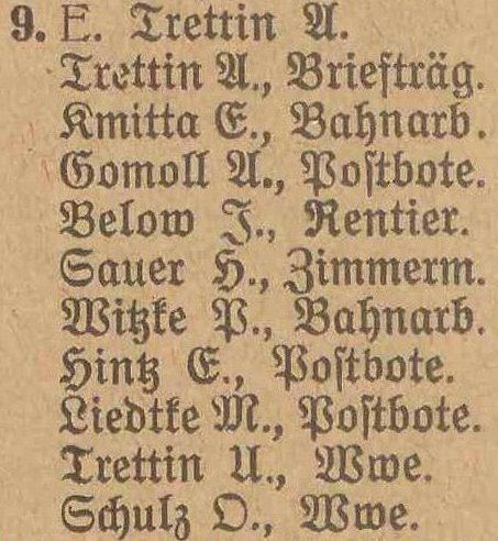 Trettin. Książka adresowa gminy Oliwa z 1916 roku. Zbiory Mirosława Piskorskiego.