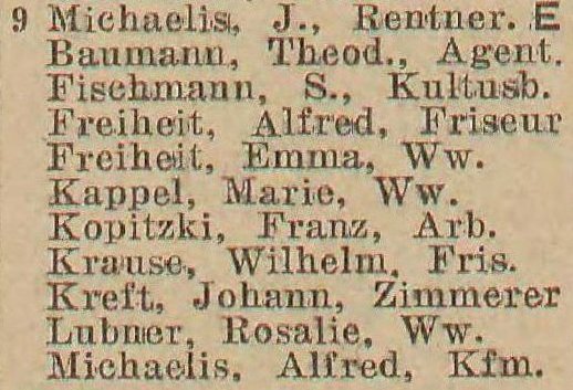 Michaelis, Josef, właściciel domu (Hausbesitzer).