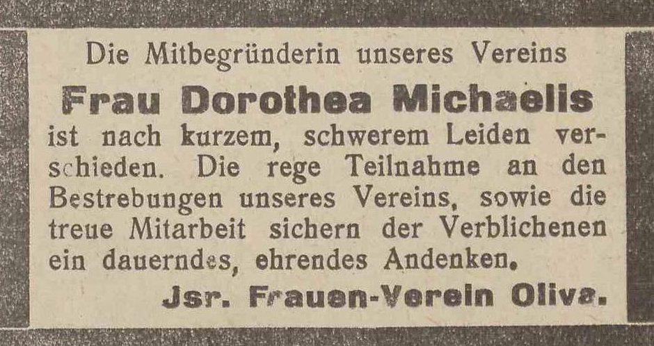 Dorothea Michaelis. Olivaer Zeintung nr 88 z 14. 04. 1930 r.